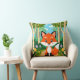En söt serietecknad räv sitter på en solbelyst skogsstig bland björkar och färgglada vilda blommor, vilket frammanar lekfulla, fantasifulla känslor som är idealiska för barnböcker, dekorationer i barnkammare och naturinspirerade designs.
