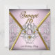 Söt sexton Sweet 16 Damask Rosa Vit Silver Guld Födelsedagsfest Inbjudan Födelsedagsfirande Elegant. Zizzago