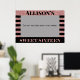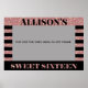Ta en bild med dina vänner på din stora dag! På din sextonårsdag, ha den nödvändiga ramen för att göra dagen minnesvärd! Den mittersta grå delen ska klippas ut, och sedan kommer ramen att ge en fin kant när du tar bilder med vänner och familj. Innan du klipper ut mitten kan affischen limmas på något mer stabilt som skum eller kartong, om det kan kapas igenom. Vänligen anpassa namn!