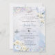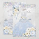 PixDezines akvarell isblå hortensia och rosor i rosenskär, krämfärg, holografisk konfetti Söt 16, och glitter akvarell klänning i dammig blå och iriserande ljus platinabakgrund (se filter för att ändra ton) och konfetti. Alla element är redigerbara.