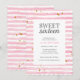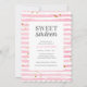 Trendig och modern inbjudan till söt sexton födelsedagsfest med rosa akvarellränder och matchande baksida och en vågig kant.
