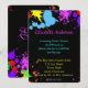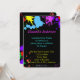 Söt sextonårsfest, Quinceanera eller Bat Mitzvah-fest, Ljus neon-inbjudan. Färgglad färgsprut på svart. LYSTER FAKTISKT INTE. ALLA DESIGNELEMENT ÄR UTTRYCKTA.