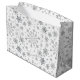 Blandad söt silver grått (grått) snöflingor är utspridd under hela denna jul i mönster. Den här söta, festliga designen med en skarp vintervit bakgrund är säker på att alla åldrar och perfekter passar alla som tycker om mjuk och känslig julafton mönster.