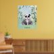 Illustration av en svart-vit söt pandabjörn som sitter nära grön akvarellbambu. Det är en utmärkt design för pandafans eller de som älskar super söta djur. Färgerna är pastellfärgade och ser ut som en akvarellmålning. Detta tryck kommer att lysa upp alla barns sovrum eller lekrum. Kan personifieras med ditt barns namn.