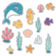Dyk in i ett magiskt undervattensäventyr med denna söta klistermärkespack med havsdjur! Denna samling innehåller charmiga, handritade havsvänner, inklusive en vänlig blå delfin, en gyllene sjöhästar, färgglada tropiska fiskar, en leende sjöstjärna och livfulla korallrev. Perfekt för att dekorera bärbara datorer, vattenflaskor, dagböcker och planerare. Dessa högkvalitativa klistermärken är idealiska för barn, havsentusiaster och alla som älskar söt estetik. Lägg till en nypa marint liv till dina vardagsföremål!