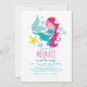 Blåa, teal och rosa sjöjungfru, söta babyduschinbjudningar.