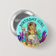 En turkvosbrun sjöjungfru med havets vänner "Birthday Girl"-knapp. Denna lilla sjöjungfru kan vara representativ för afrikansk-amerikanska eller latinamerikanska flickor.