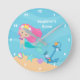 Söt sjöjungfru flicka strandhus Personlig barn Rund Klocka