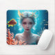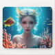 Söt sjöjungfru under havet under vatten med korall och fisk. Fantasy ai art.