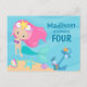 Söt sjöjungfru tjej anpassat födelsedagsfestinbjud vykort