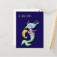 Söt marinblå postkort för att önska god hälsa med en illustration av en sjöjungfru med brutet arm. Den lilla fisken lägger till lite konst i hennes gips. Texten lyder "Hoppas du blir frisk snart" men du kan anpassa den och till och med anpassa den ytterligare för att ändra typsnitt, färg och storlek.