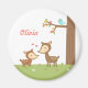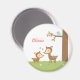 Uttryck moderns kärlek till barnet med denna söta skogsmagnet med tema för den lilla! Den har en mor och ett barn hjort, dovhjort och hennes kalv lyckligt på en gräsplätt som har glada röda tulpaner och vita prästkragar. En blå fågel sitter på en trädgren. Personifiera med barnets namn.