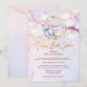 Fira den kommande ankomsten av ditt älskade barn med denna eleganta, snygga, söta och drömlika "Virtuella Bebisdopp Inbjudan" med en vacker skogsbrun i blå karokjol som sover på en rosenkrans av blommande lövverk på framsidan. Titeln har förgylld kalligrafi. Bakgrunden har moln på en rosa-blå vattenfärg. All text är förberedd för att du enkelt och snabbt ska kunna anpassa den med detaljer om din bebisfest.