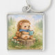 Söt skogsiggelkott med mugg fyrkantig silverfärgad nyckelring