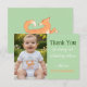 Säg tack med söta ord till dina vänner och familj med detta charmiga skogsräv-födelsedagsfotokort. Med en fantasifull, handritad orange räv-illustration på en mjuk, grönsalvgrön bakgrund är denna design perfekt för en skogstematisk födelsedag eller baby shower. Framsidan har ett dedikerat utrymme för ditt favoritfoto av födelsedagsbarnet, tillsammans med ett lekfullt "Tack för att du kom och firade med oss"-meddelande. Anpassa enkelt texten med ditt familjenamn för en personlig och hjärtlig touch. Ett vackert och minnesvärt sätt att avsluta din skogsfirande.