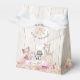 Skogsbaserade baby shower presentlådor med söta skogsdjur på en blomster- och rustik trädgalleri bakgrund. Dessa flicka skogsbarn baby shower presentlådor kan enkelt anpassas med din text.