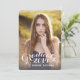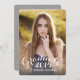 Perfektens fotokort bjuder in din familj och vänner till din dotters studentfest. Söt skript| Inbjudan till Studentfest för 2014. Design av Elke Clarke © för MonogramGallery. Lägg till ditt eget foto och din egen text. En textövertäckning med eleganten "2014 Student" för färgskript skrivs ut på framsidan med en lätt grått-ombre-effekt. Lägg till din inbjudningstext på baksidan av kortet med ett modernt vitt teckensnitt på en (tryckt fotoeffekt) vintage lätt grått- eller grått-kraft-papprare bakgrund. Andra tillgängliga stilar och färger.