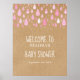 Söta små rosa regndroppar faller mot dina personliga detaljer på en rustik kraft boho-bakgrund, på denna söta baby shower för flickor, stänk eller couples shower-välkomstskylt. Designad av Thisisnotme