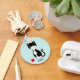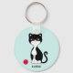 Söt smokingkatt och boll på ljusblå. Texten kan anpassas.
