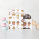 Ett sött och färgglatt mönster presentpapper gjort med hjälp av doodles som glass på kon, varm korv i korvbröd, munk med strössel, skiva pepperonipizza, saftig hamburgare, paket pommes frites och isglass! Kawaii och läcker design för henne, speciellt om hon gillar skräpmat och snabbmat.