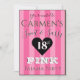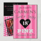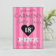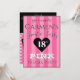 Rosa ränder på framsidan av inbjudan med överdimensionerad svart hjärta som visar anpassningsbar ÅLDER för hedersgästen.