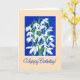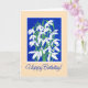 Ett söt vinterfödelsedagskort, med ett gäng snowdroppar på en djup blå bakgrund, omgiven av en blek rosa gräns, från en vattenfärgsmålning av Judy Adamson. Om du vill kan du gärna ändra det inre meddelandet.