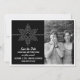 Meddela din högtid eller vintertema bröllop med detta söta snöflinga Foto Spara datum tillkännagivande. Med en delikat och elegant vit snöflinga och tunn rand på en solid svart bakgrund, är denna roliga design enkel att anpassa. Lägg bara till ditt eget foto och bröllopsinformation i de tillgängliga textfälten eller klicka på "Anpassa" för att hitta fler anpassningsalternativ.