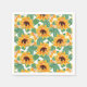Födelsedagsfest eller annan händelse pappra blöjor med söt mönster. Solblommor av söt gult omgivna av grönt löv i ett upprepande mönster.