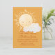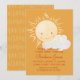 Vattenfärg Solsken gul. Vänligt ansikte Sol framför en fluffig moln, med en stark guldton i bakgrunden. Texten kan anpassas för ditt evenemang och all text kan anpassas såväl som bakgrundsfärg.