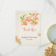 Skicka ett hjärtligt tack med detta eleganta bröllopsdusch-kort med persikotema! Med mjuka akvarell-persikor och diskreta blomsterdekorationer är detta kort perfekt för att visa uppskattning till gästerna. Det är helt anpassningsbart med ditt meddelande inuti. Matchande inbjudningar, lekar och dekorationer finns tillgängliga för att komplettera bröllopsdusch-kollektionen!