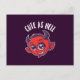 Vektori tecknad illustration av en djävulskt söt liten djävul med stora ögon med texten Söt som helvete.