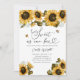 Rustik bikupa baby shower inbjudan mall kort med akvarell illustration av gula solrosor och babys andedräkt med humlor. Perfekt för en sommar baby shower. Texten säger "söt som kan vara".