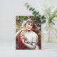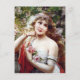 Romantisk Vintage flicka med långdraget hår och rosa ros som är krabbat i hennes arm.