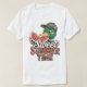 Den här vita t-tröjan har en tecknad som illustrerar en anka som bär ett kamouflage basebolllock och som glatt äter en bit vattenmelon. Texten "Sweet SOMMER TIME" står under anka i ett lekfullt, något nedtryckt rött teckensnitt och med grönt. Den här utformningen framkallar en roligt, en sommarkänsla.