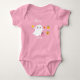 Söt rosa babybodysuit med en liten spök som håller Halloween-godis. Personalisera den med ett namn eller lämna den som den är, bara för skojs skull.