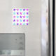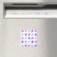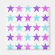 Den här söten har en mönster av texturerade stjärnor i lila, rosa och teal på vit bakgrund.