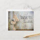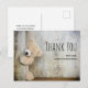 Tack-kort med en förtjusande bild av en söt stoppad björn som står vid en rustik trävägg / bakgrund.