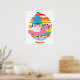 Bedårande strandtomteaffisch. Denna söta lilla tomte njuter av sin enhörningsflotte. Perfekt för barnkammare. Lägg till ditt eget namn för att anpassa.