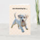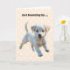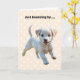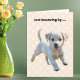 Skicka varma önskningar om en snabb återhämtning med detta söta valptematiska välmående-kort. Kortet visar en söt, livlig valp på en pastellrosa bakgrund med tassavtrycksdesign. Meddelandet "Bara studsade förbi..." på kortets framsida följs av "för att önskas dig en snabb återhämtning" på insidan. Perfekt för hundälskare och alla som kan behöva uppmuntran, välgångsönskningar och en söt boost av valpkärlek.