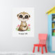 Sött surikat-barn och rosa blommor glad affisch. Texten kan anpassas. Surikater symboliserar familjevärderingar, medvetenhet och god lycka.