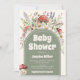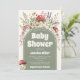 Akvarell svamp könsneutrala baby shower-inbjudan med röda flugsvampar, vilda blommor, lavendel och grönska i en mjuk skogstema. Mysig boho-stil med en salvia grön valvpanel och vintageinspirerad typografi, perfekt för en naturlig baby shower, höst baby shower, fantasifull trädgårdsfest eller skogsbarnsspridning. Anpassningsbar text för detaljer om baby shower, värdnamn, datum, tid, plats, RSVP och presentlista.