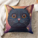 En bedårande konstnärlig avbildning av en svart katt med uttrycksfulla bärnstensfärgade ögon och detaljerade morrhår. En perfekt bild för att fira kärlek till djur och katternas charm.