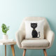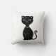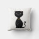 Söt smart svart katt tecknad på vit kudde.