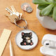 Söt svart katt med kaffe rund silverfärgad nyckelring