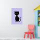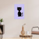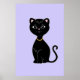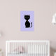 Söt smart svart katt tecknad på ljusblåaktig periwinkle