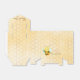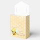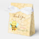 En affär för en babyåda på sommaren. Gult, vit bakgrund med en bikaka mönster. Med faux guld geometric ram. Dekorerad med ett sött baby-bi med en rast. Med texten: Tack och Mamma till Bee skrivet med ett modernt handskript i stil. Mall för mamma att vara i namn och duschdatum. Rosa, grönt och brunt brev. Könsneutralt.