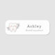 Ett sött namnskylt för tandläkaren med en söt grafik av en leende botanisk tand. Text i grå nyanser.
