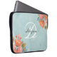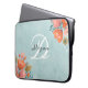 Söt Teal Rosa Blommigt Monogram Laptop Fodral