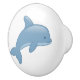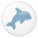 Tecknad illustration av en söt delfin med blågrå hud och ljust undersida.
