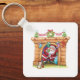 Söt tecknad jolly tomte som kommer ner genom skors nyckelring